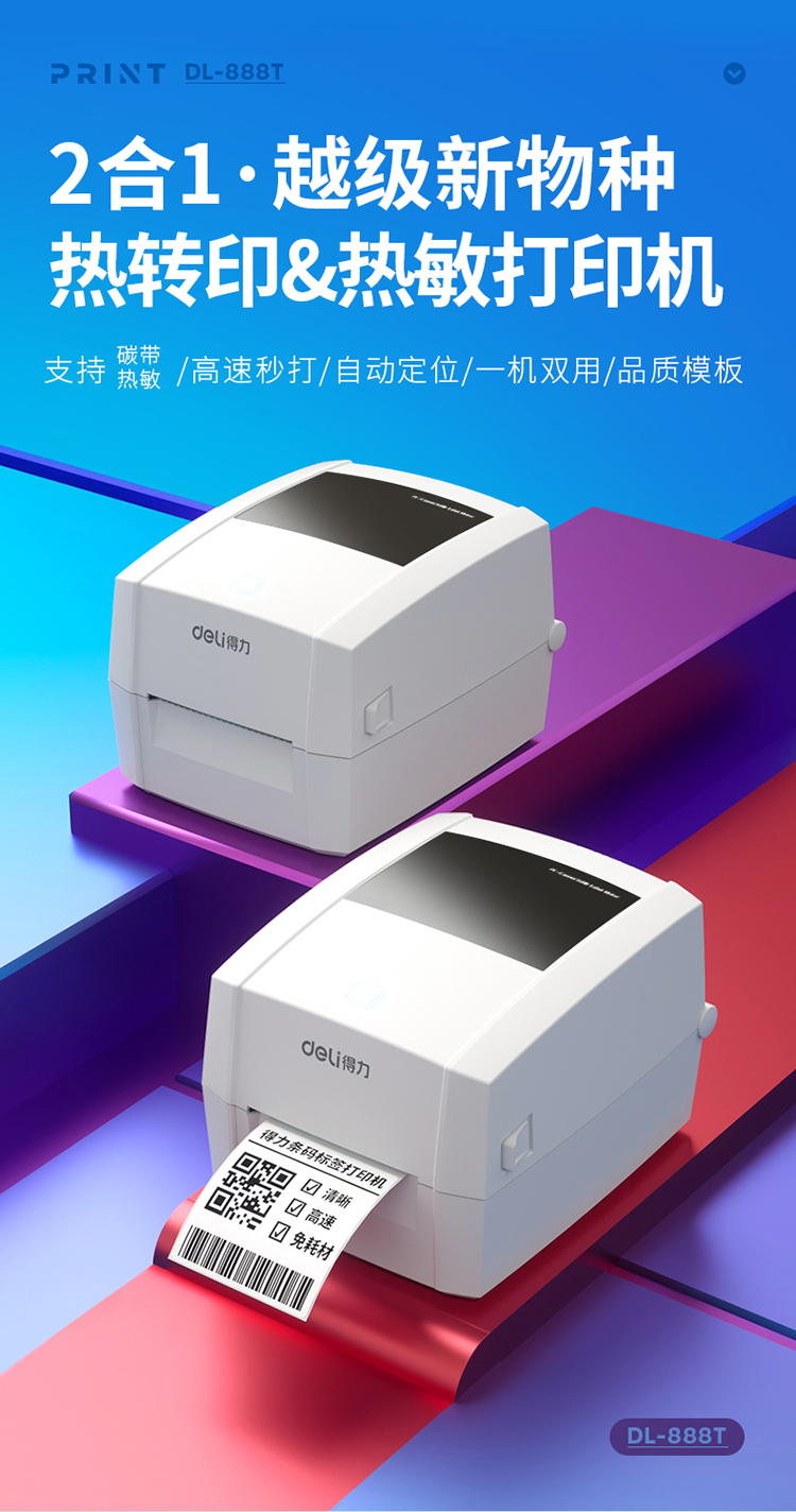 得力(deli)DL-888T 不干胶打印机标签打印机条码打印机 DL-888T