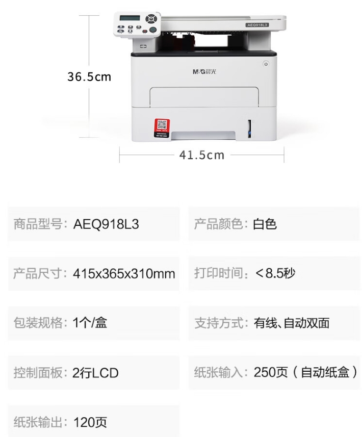 • 商品名称:晨光(M&G)MG-M3000DN 激光多功能一体机 家用商用双面打印 (带网络)AEQ918L3