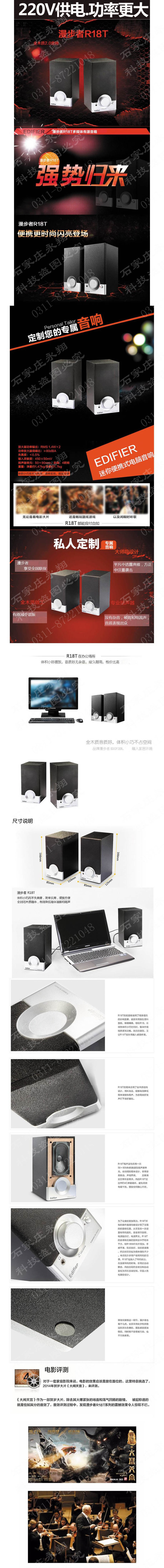 • 商品名称:漫步者(EDIFIER) R18T 2.0声道 木质多媒体音响音箱 电脑音响 黑色