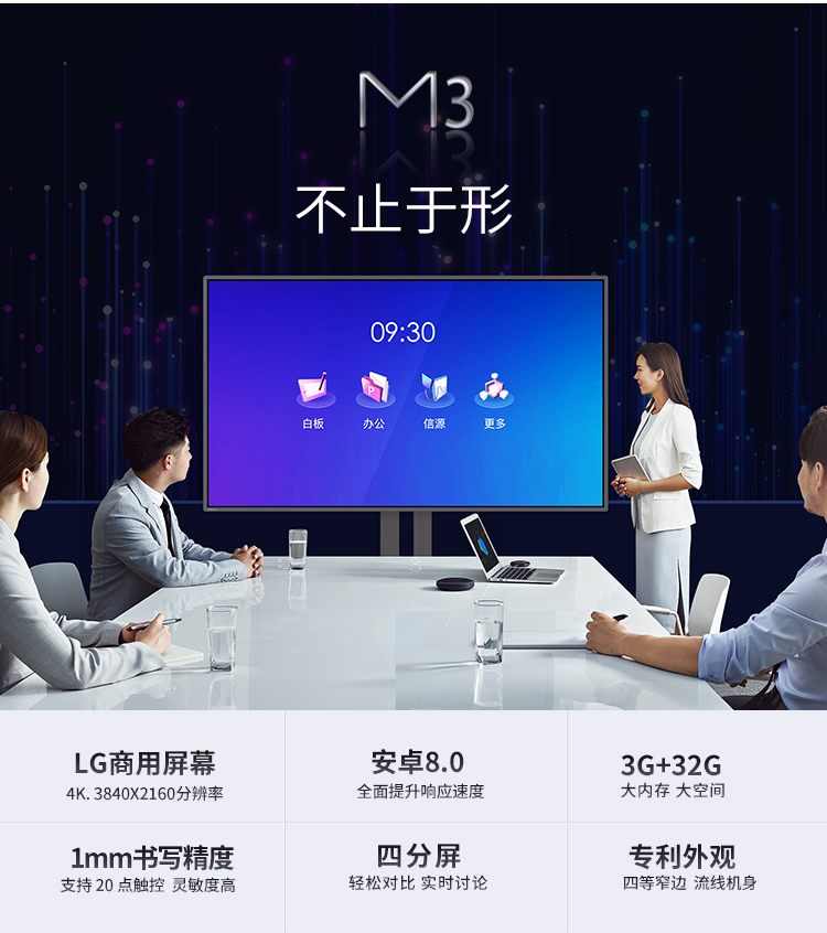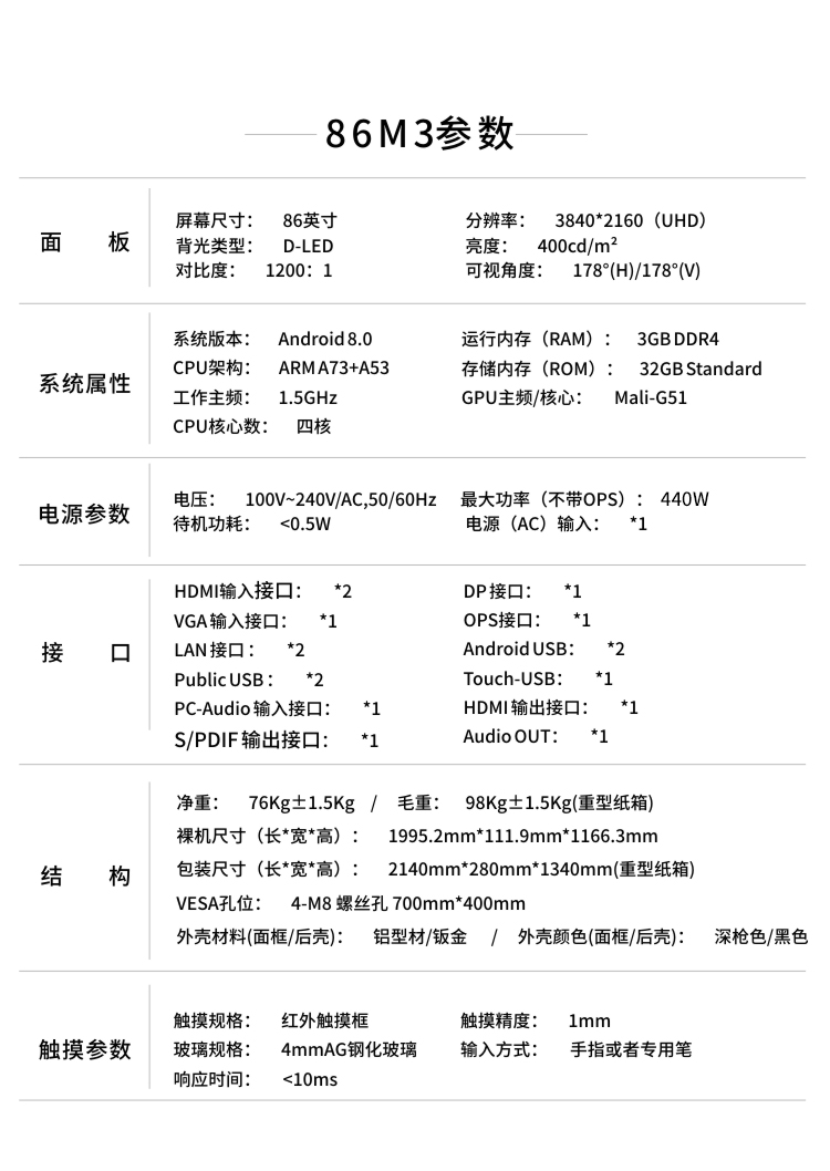 • 商品名称:皓丽HorionM3系列 智能会议平板86英寸4K高清 电子白板办公教学交互式 一体机86M3
