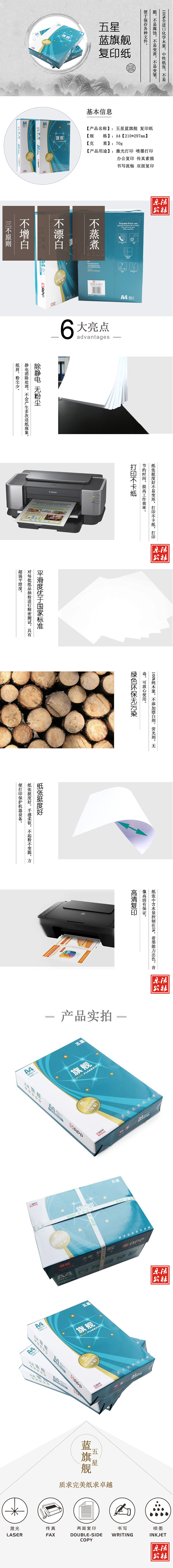 • 商品名称:蓝旗舰 五星蓝旗舰 A4 70g 复印纸 500张/包 8包/箱