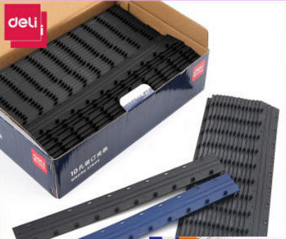 • 商品名称:得力10孔装订夹条A4 100支/盒 黑色 7.5mm 可装订75页