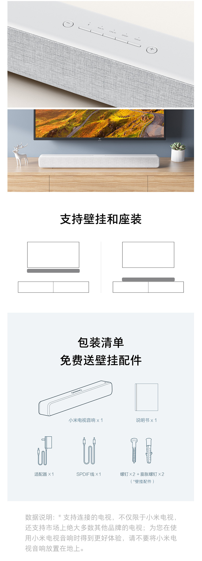 • 商品名称:小米电视音响 音箱 家庭影院 电视音响 回音壁 客厅蓝牙壁挂音响 黑色