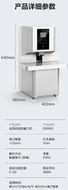 • 商品名称:得力GB800全自动财务装订机(白)(台)